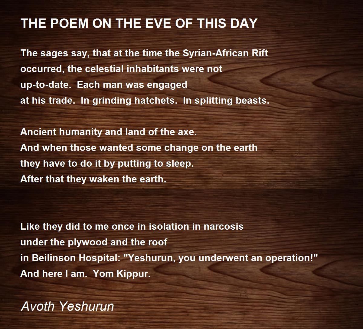 in Beilinson Hospital: "Yeshurun, you underwent an operation!"