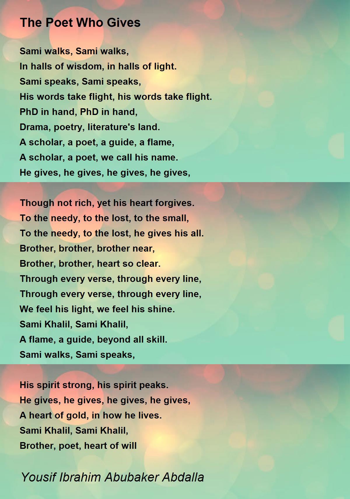 A scholar, a poet, we call his name.
