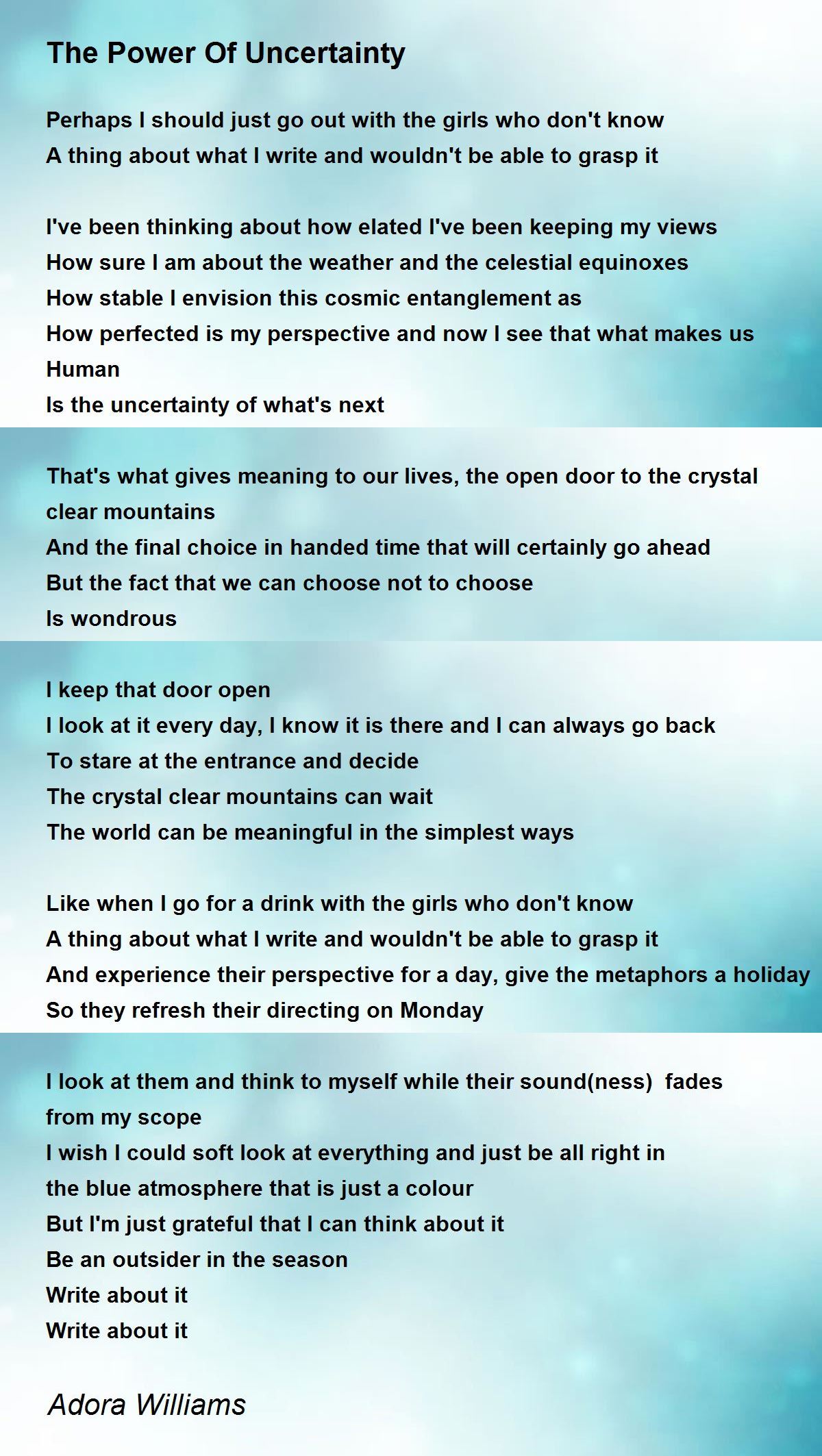 I wish I could soft look at everything and just be all right in the blue atmosphere that is just a colour