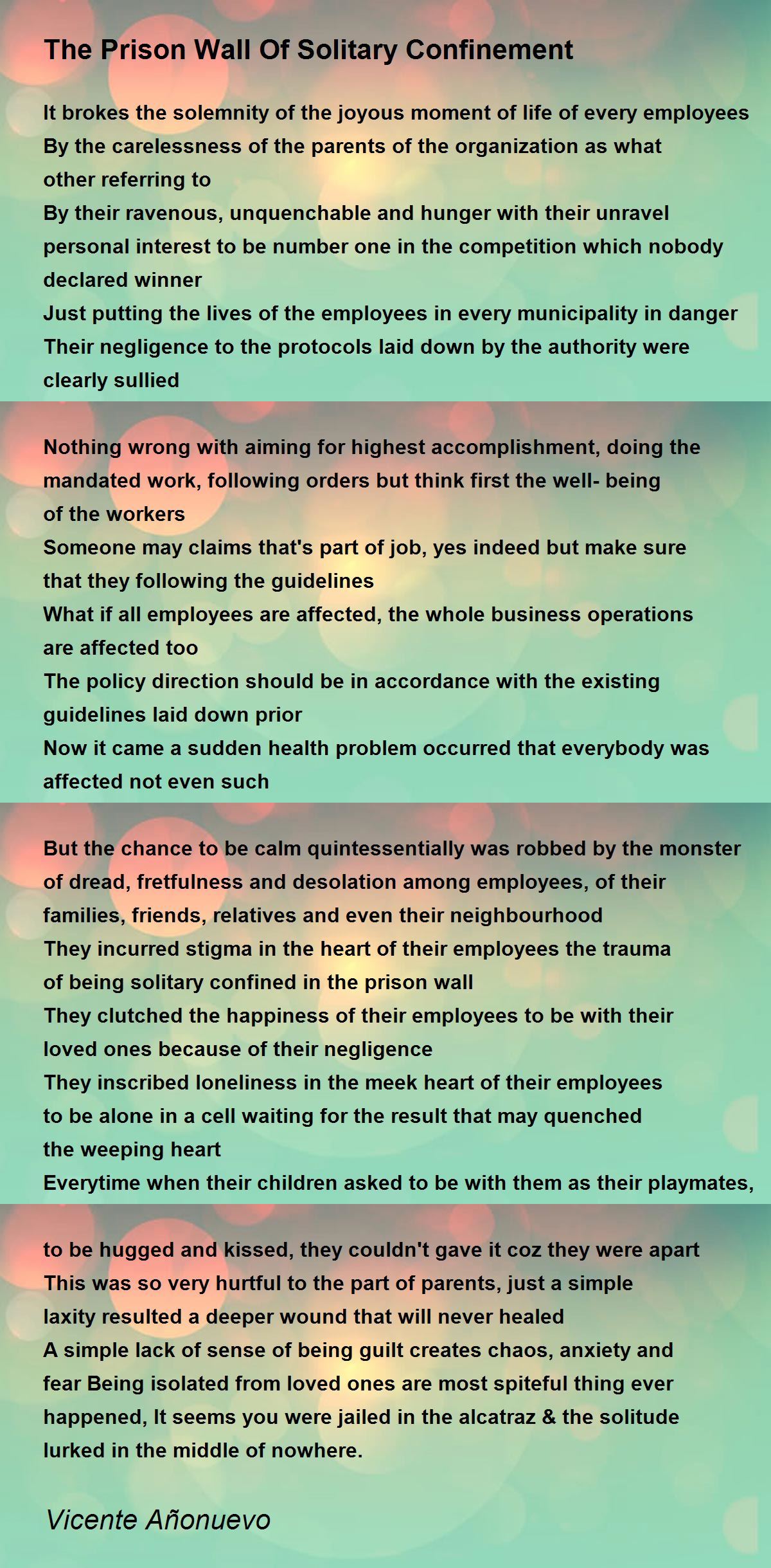 They inscribed loneliness in the meek heart of their employees to be alone in a cell waiting for the result that may quenched the weeping heart