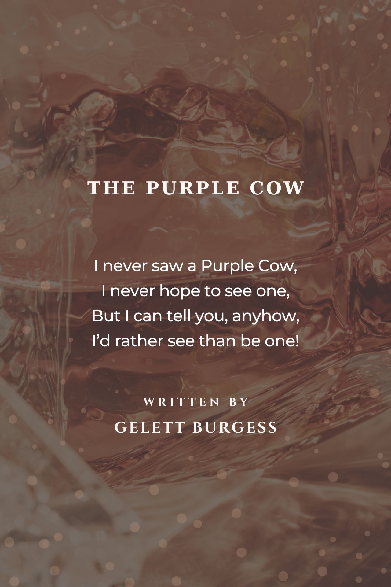 Years later, he wrote: O Yes, I wrote the purple cow I'm sorry now I wrote it. But I can tell you anyhow I'll kill you if you quote it.