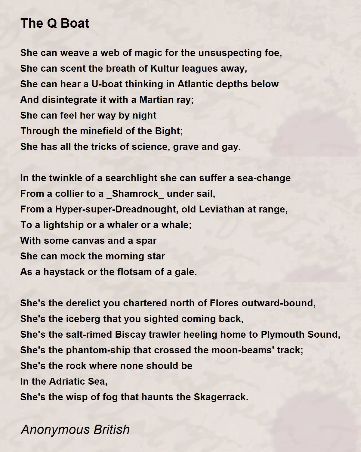 She's the salt-rimed Biscay trawler heeling home to Plymouth Sound,