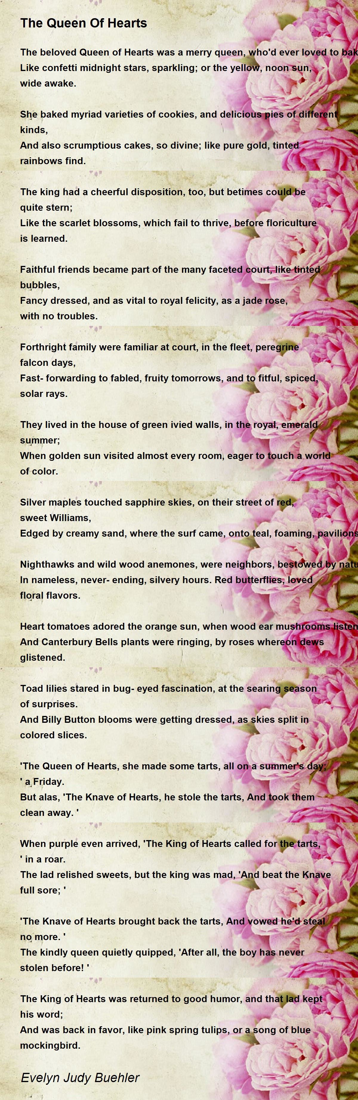 The beloved Queen of Hearts was a merry queen, who'd ever loved to bake;