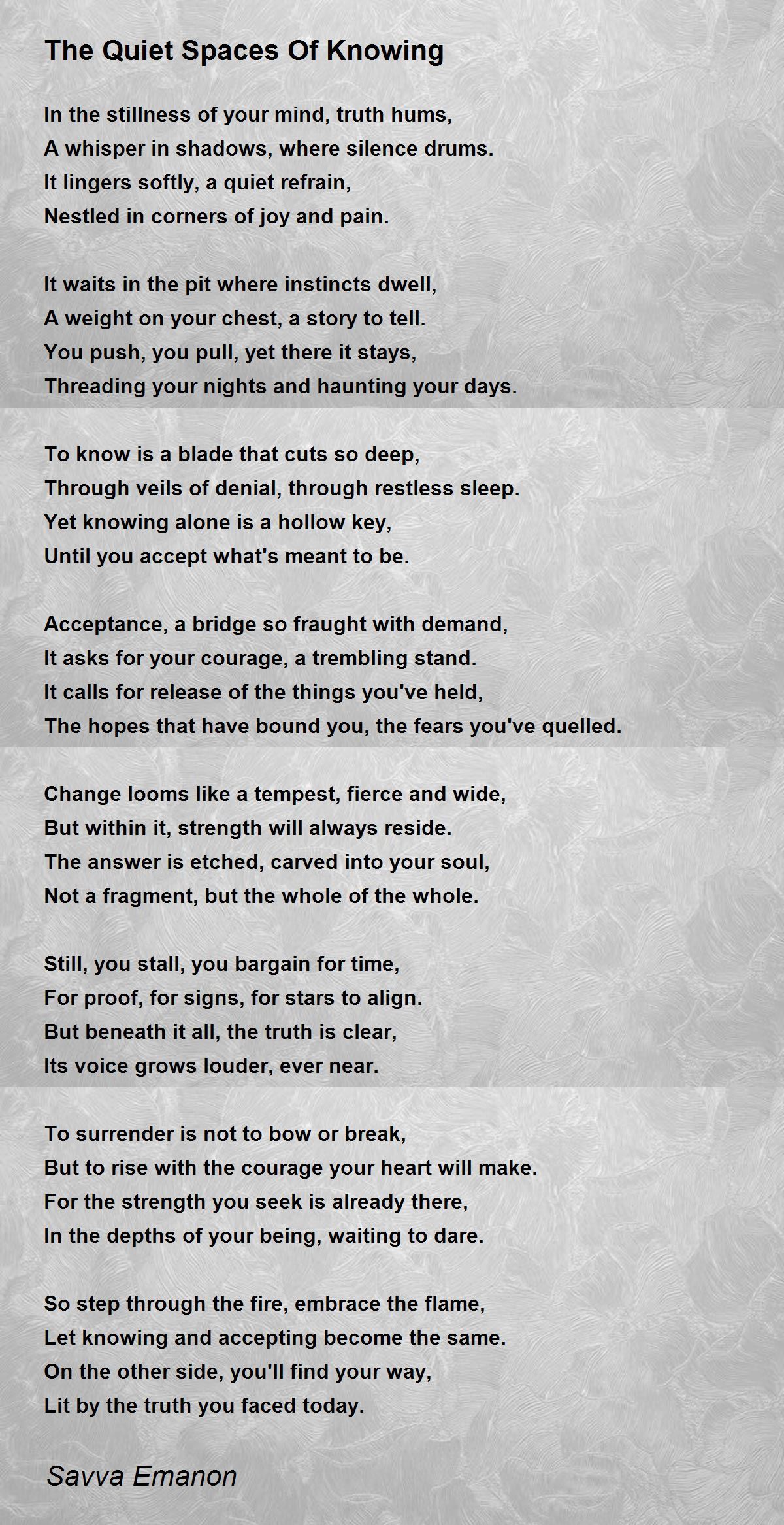 The answer is etched, carved into your soul,