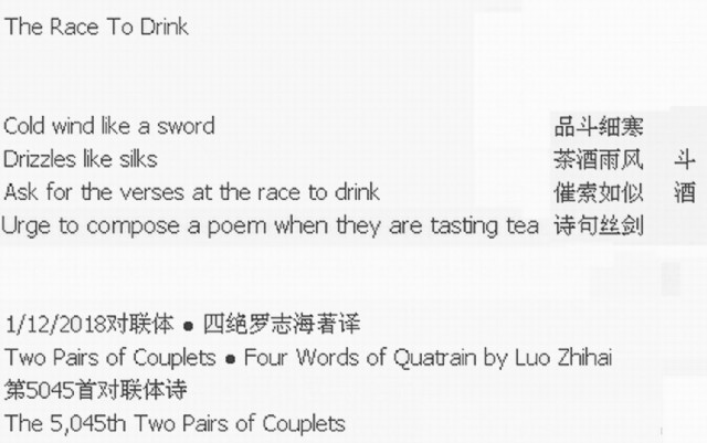 1/12/2018对联体 ● 四绝罗志海著译