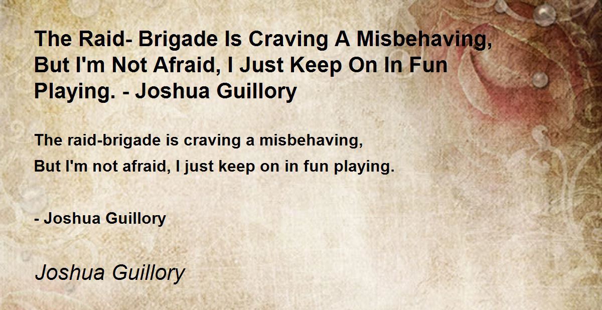 The raid-brigade is craving a misbehaving, But I'm not afraid, I just keep on in fun playing. - Joshua Guillory