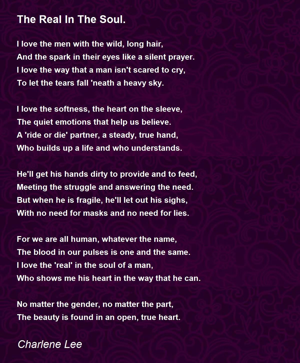 I love the 'real' in the soul of a man,
