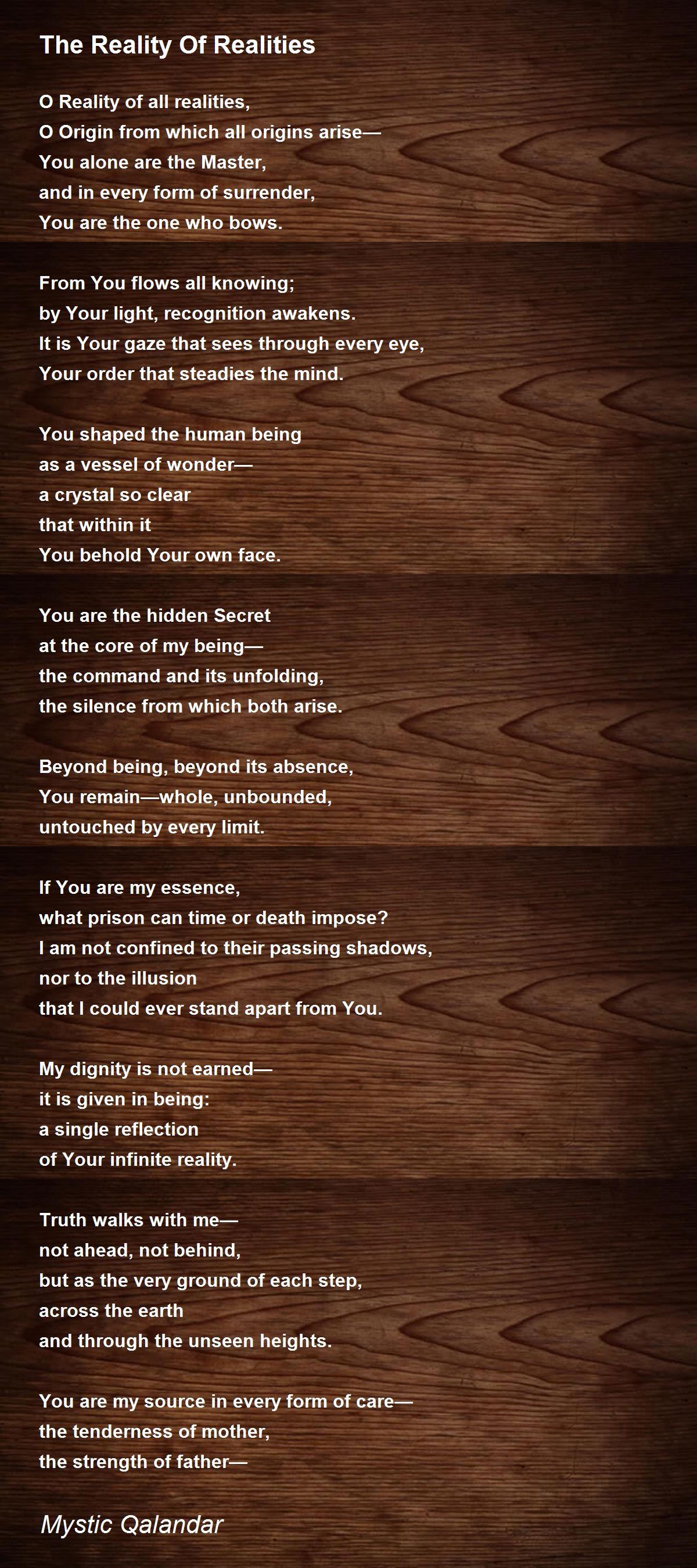 O Reality of all realities,