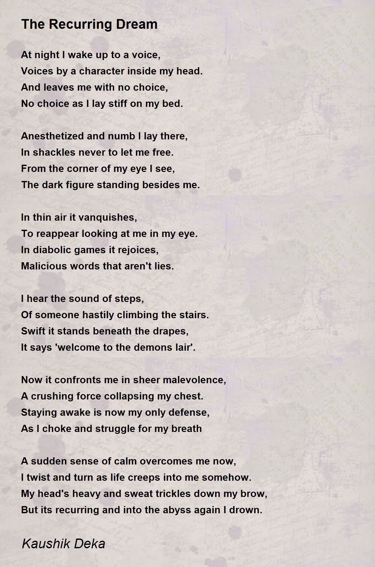 But its recurring and into the abyss again I drown.