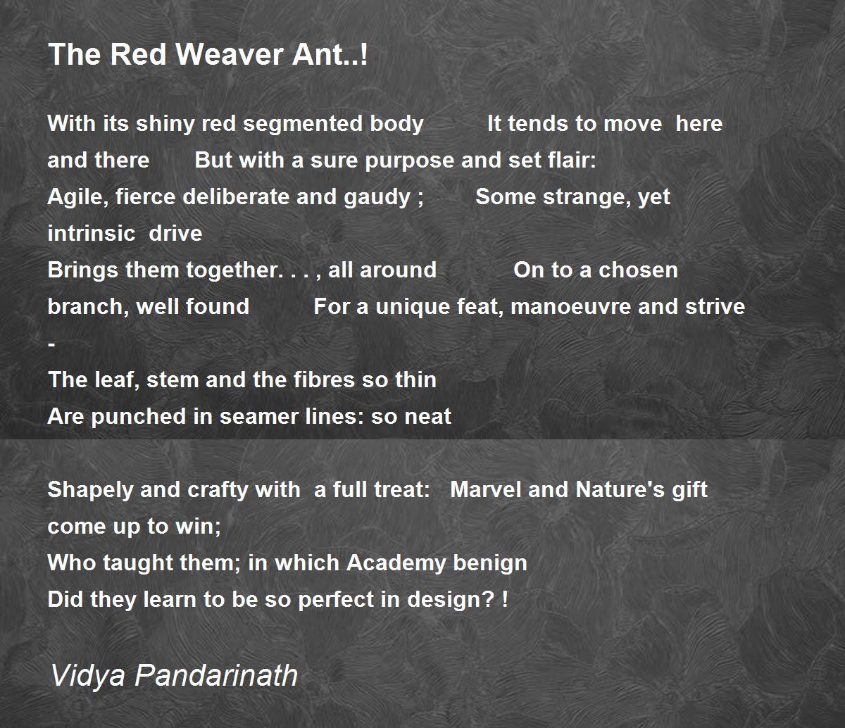 With its shiny red segmented body It tends to move here and there But with a sure purpose and set flair: