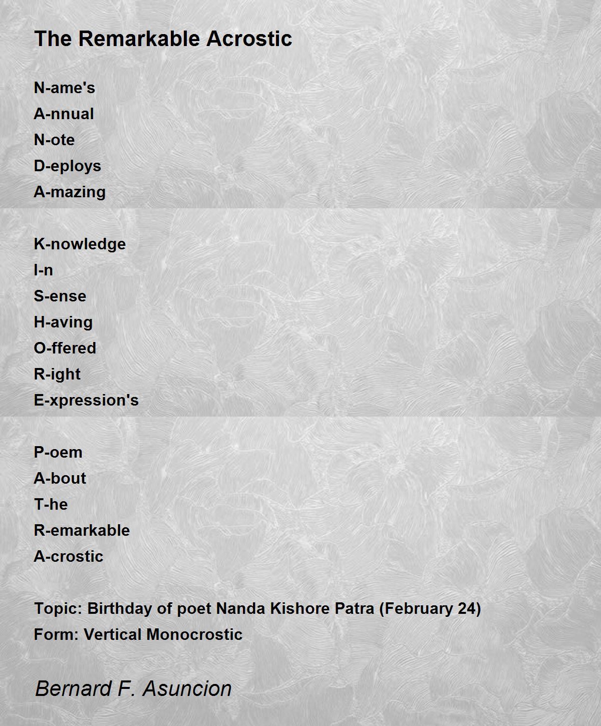 Topic: Birthday of poet Nanda Kishore Patra (February 24)