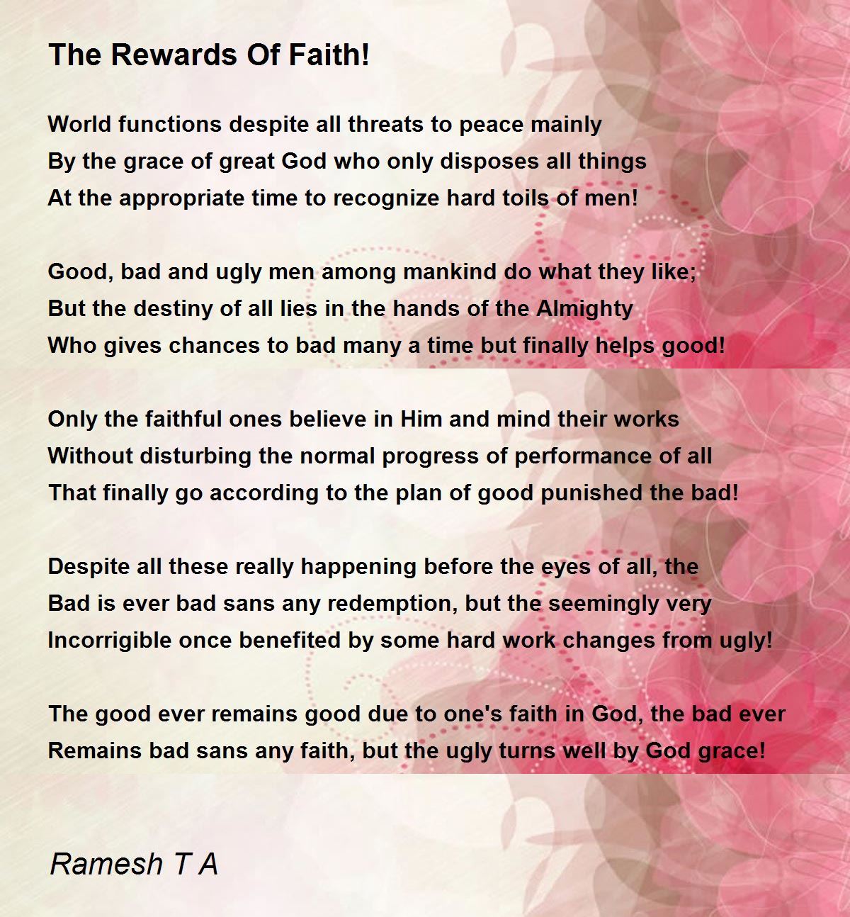 Thank you for reading my poem on Faith, my friend! The lines you loved to quote are favourite too!