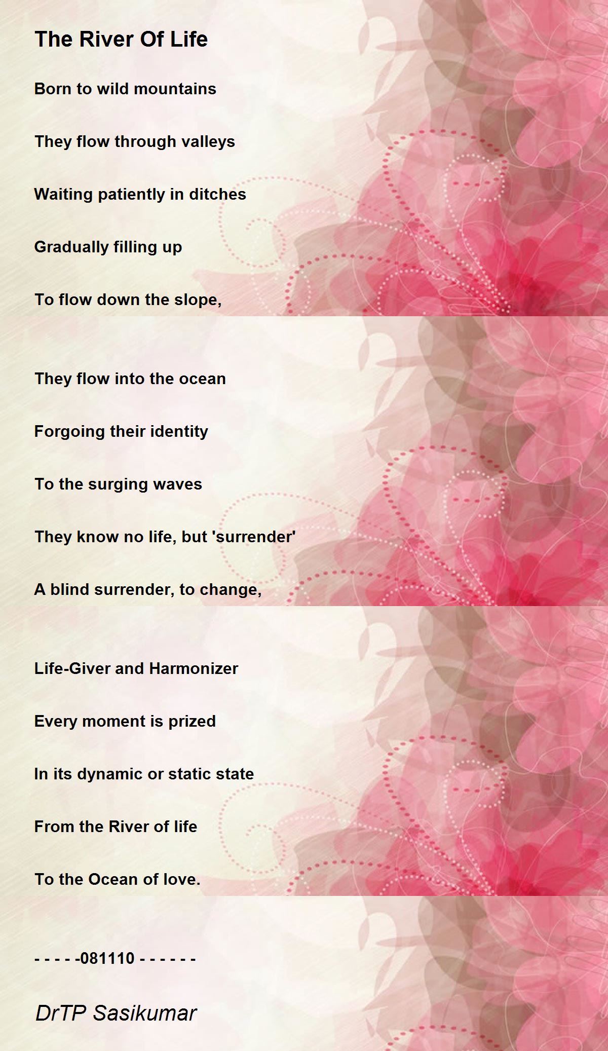 Such a wonderful description sir..... River compared with life of living organisms...... A circular cycle from birth to death...10++++++++++++++ You may like to read my poems and express your views too..... Wlcm to ph.. Naila