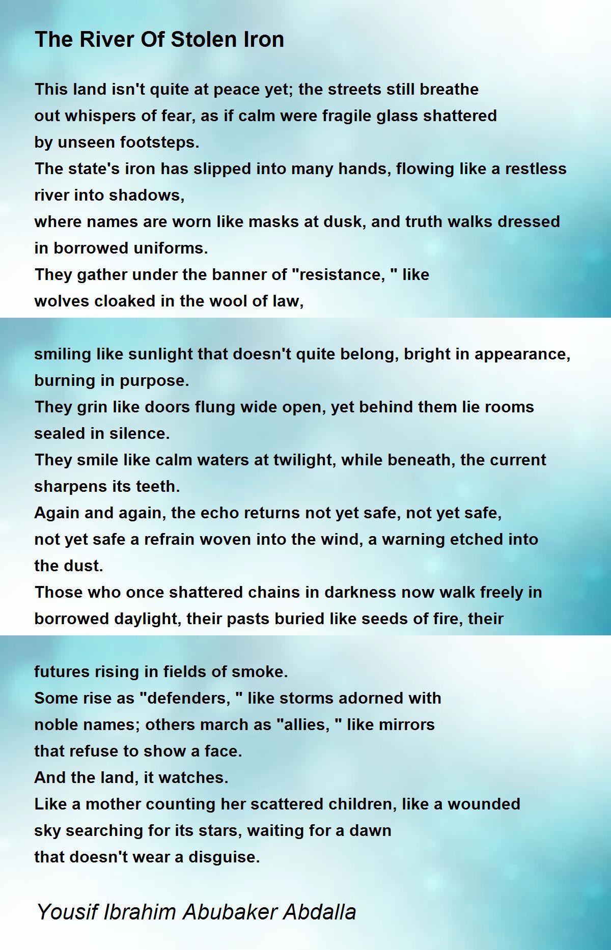 The state's iron has slipped into many hands, flowing like a restless river into shadows,