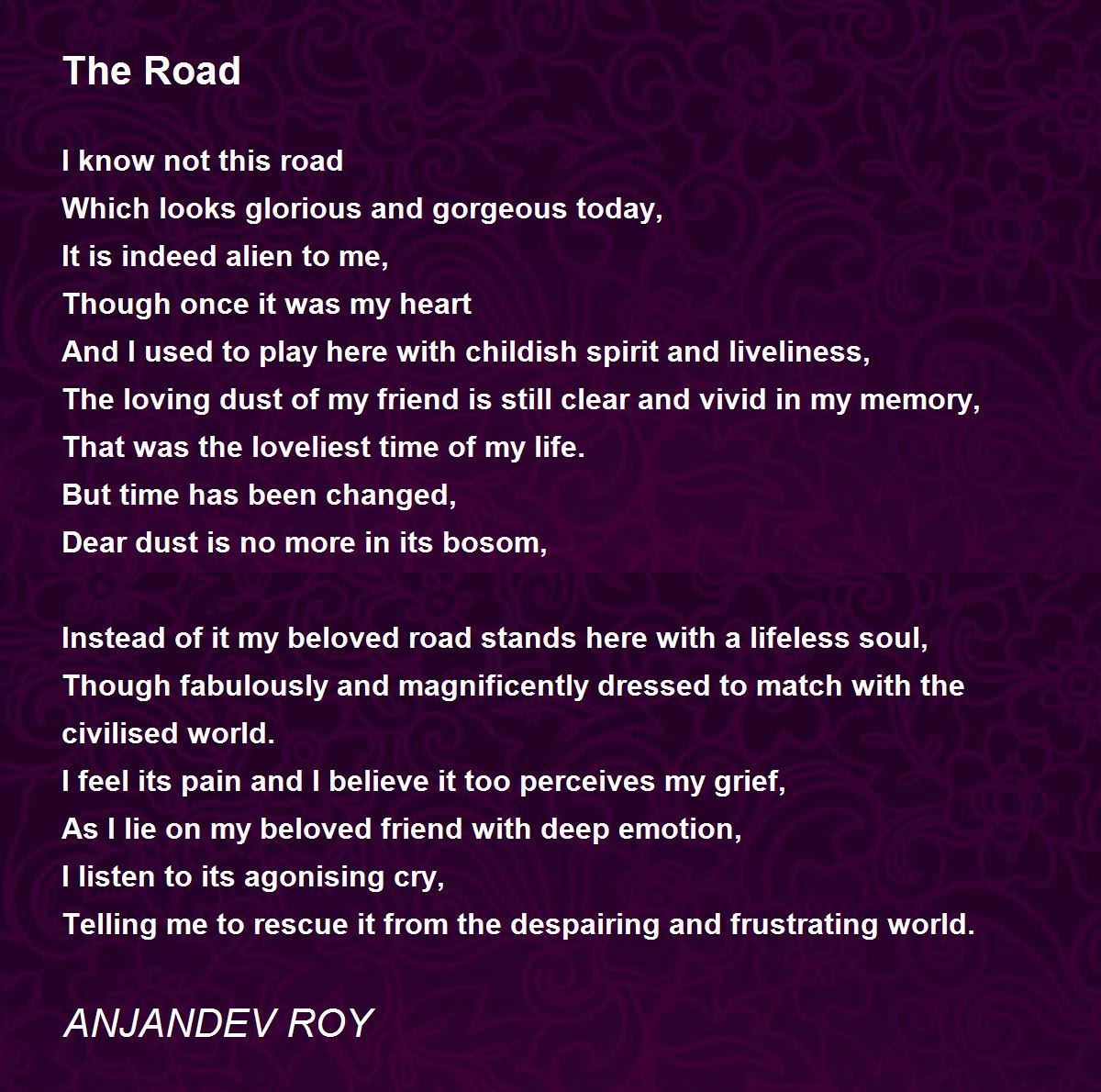 Glorious and gorgeous today's road is known to you. Still you feel its pain and you believe it too perceives your grief, . But still we hope you will gain happiness and pain will go away. Brilliant and perceptive poem is well composed and shared.10