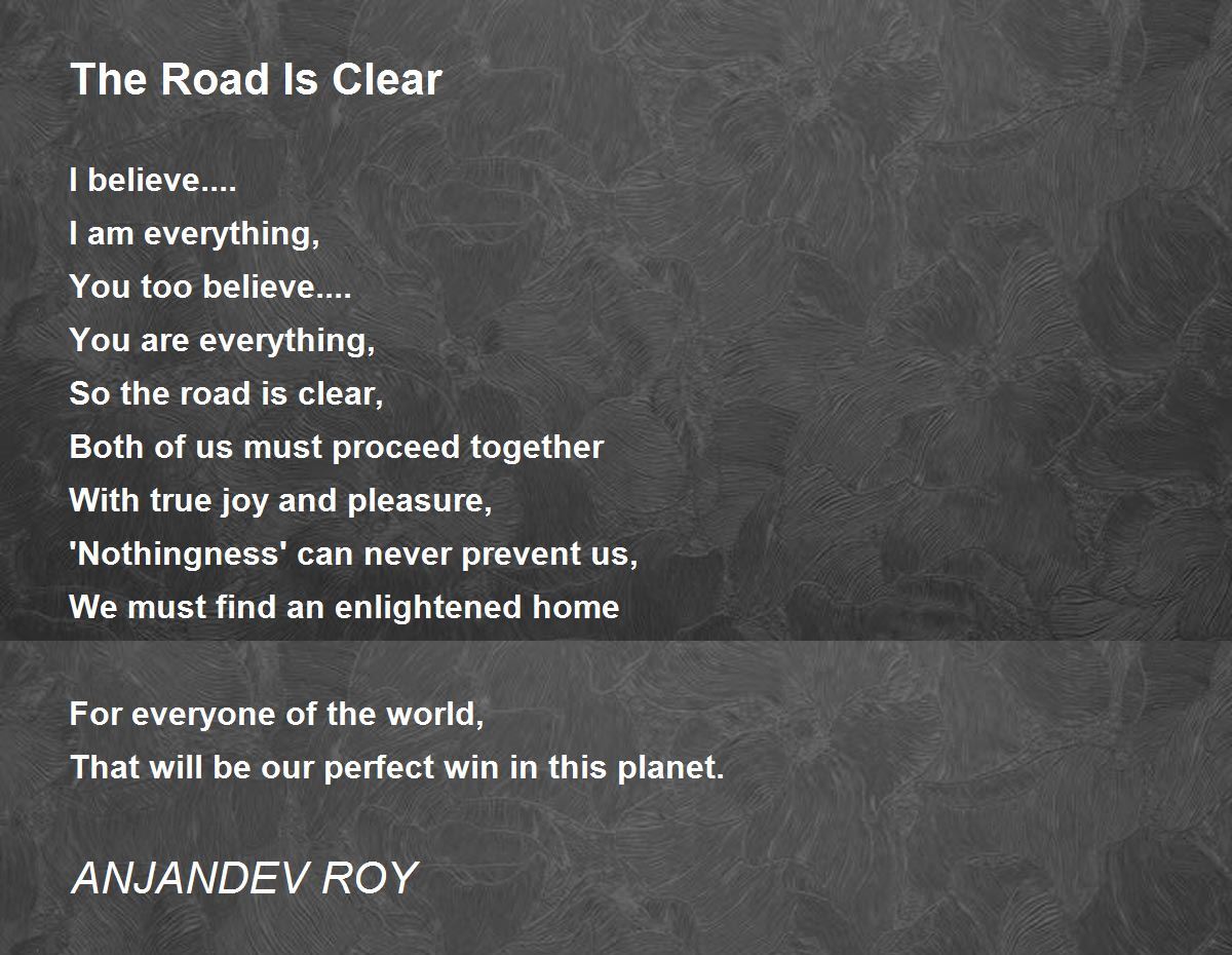 So the road is clear, both of us must proceed together with true joy and pleasure......every pedestrian can walk on the road free of cost in his own ways, in his own style either walking slowly or walking very fast or running.