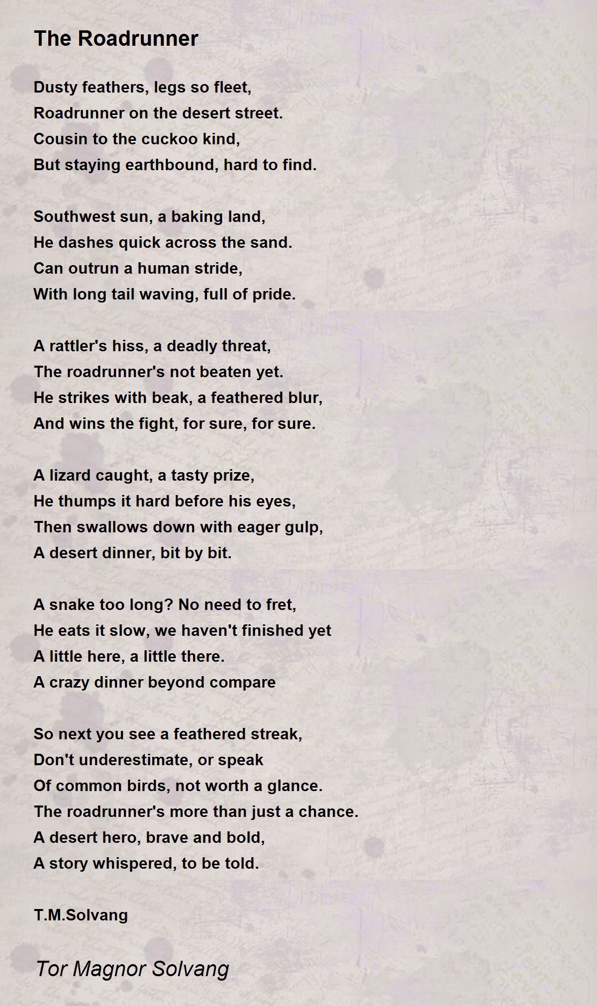 The Roadrunner Poem by Tor Magnor Solvang