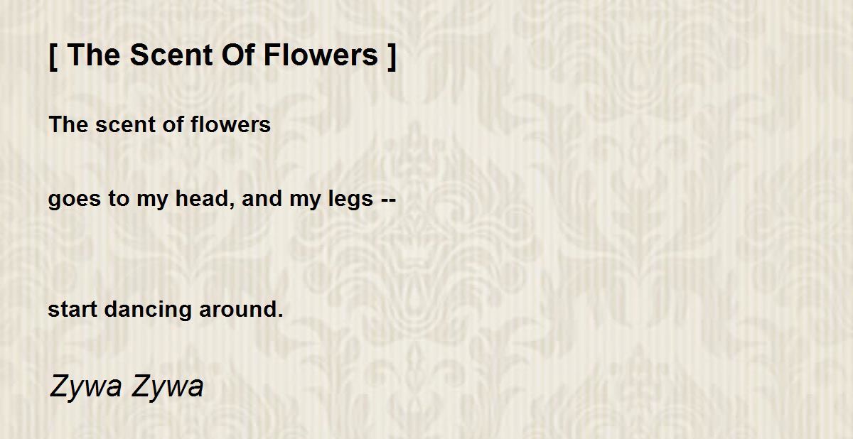 The scent of flowers goes to my head, and my legs -- start dancing around.