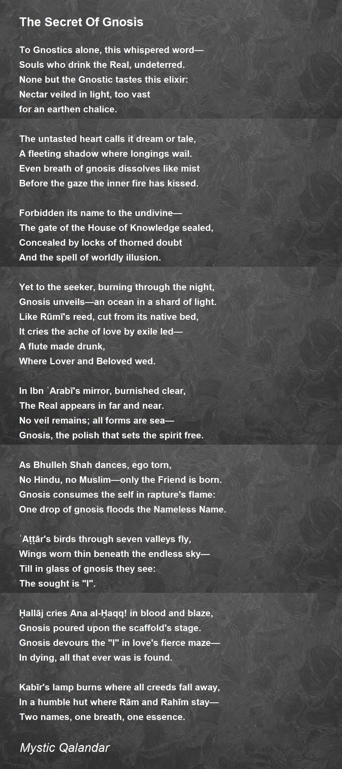 To Gnostics alone, this whispered word—