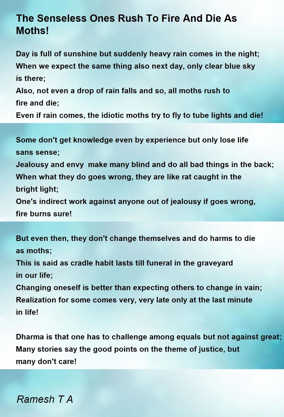 Also, not even a drop of rain falls and so, all moths rush to fire and die;