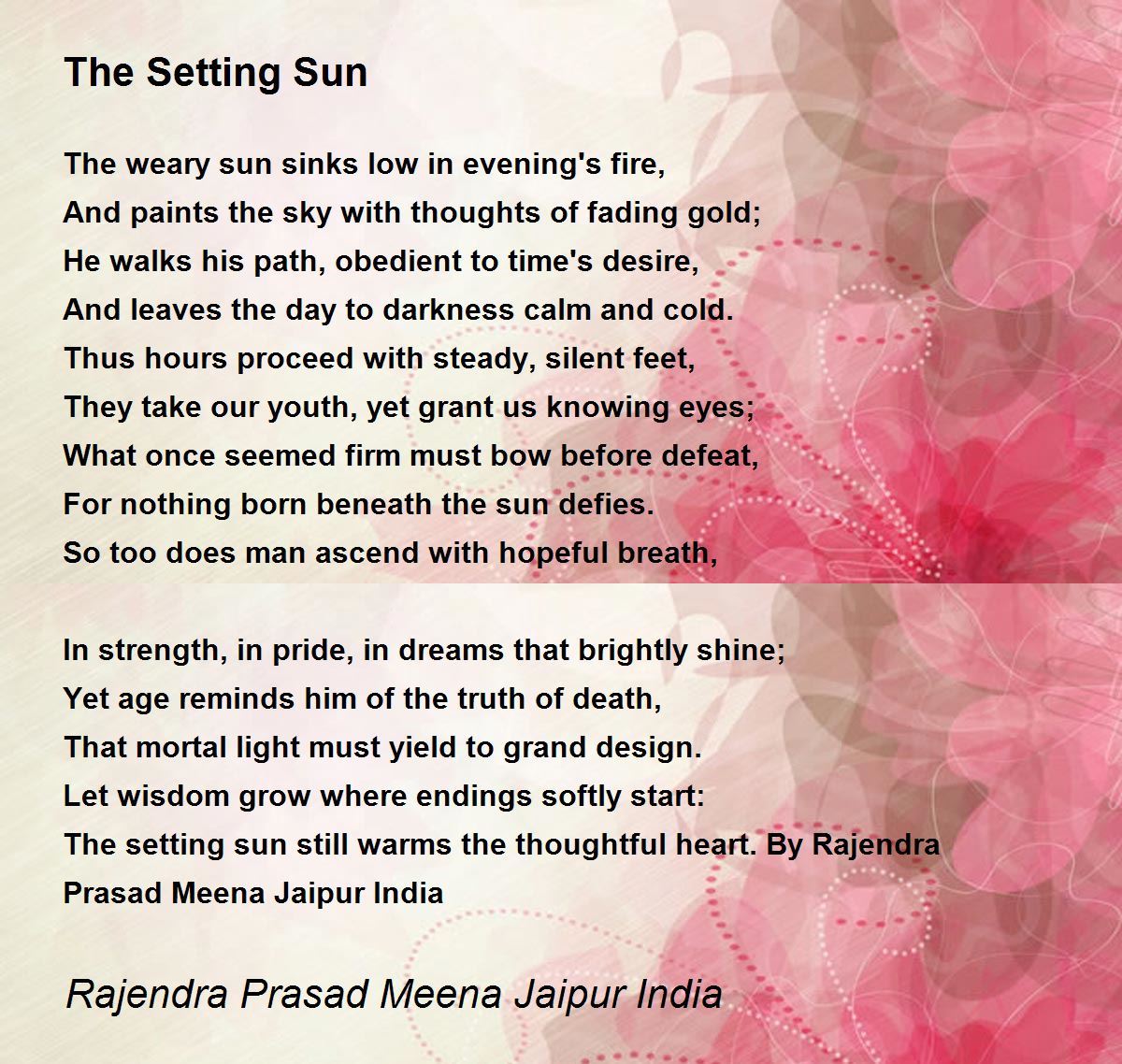 The setting sun still warms the thoughtful heart. By Rajendra Prasad Meena Jaipur India