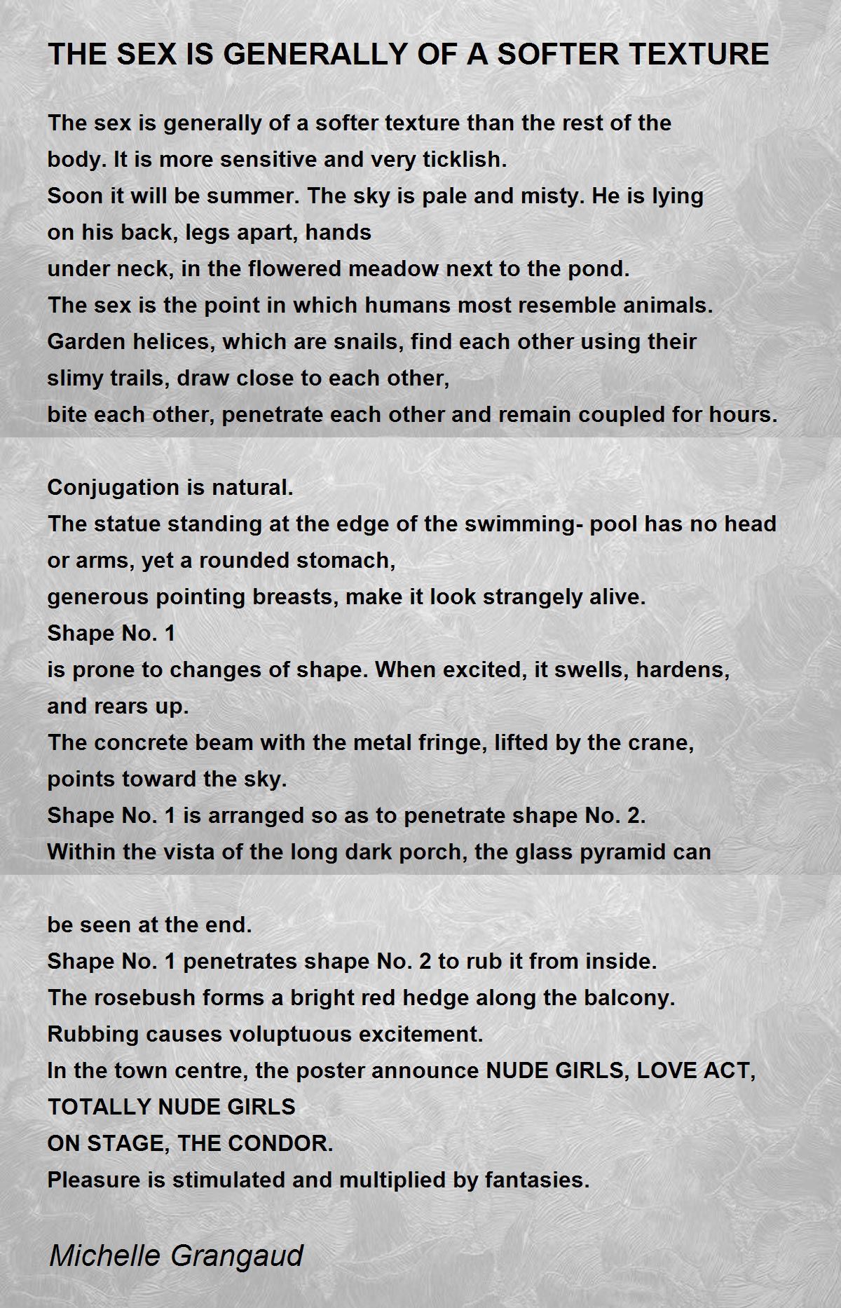 The sex is generally of a softer texture than the rest of the body. It is more sensitive and very ticklish.