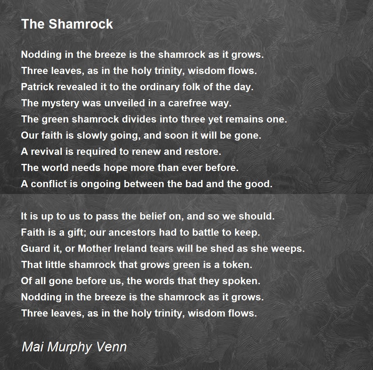 Guard it, or Mother Ireland tears will be shed as she weeps.