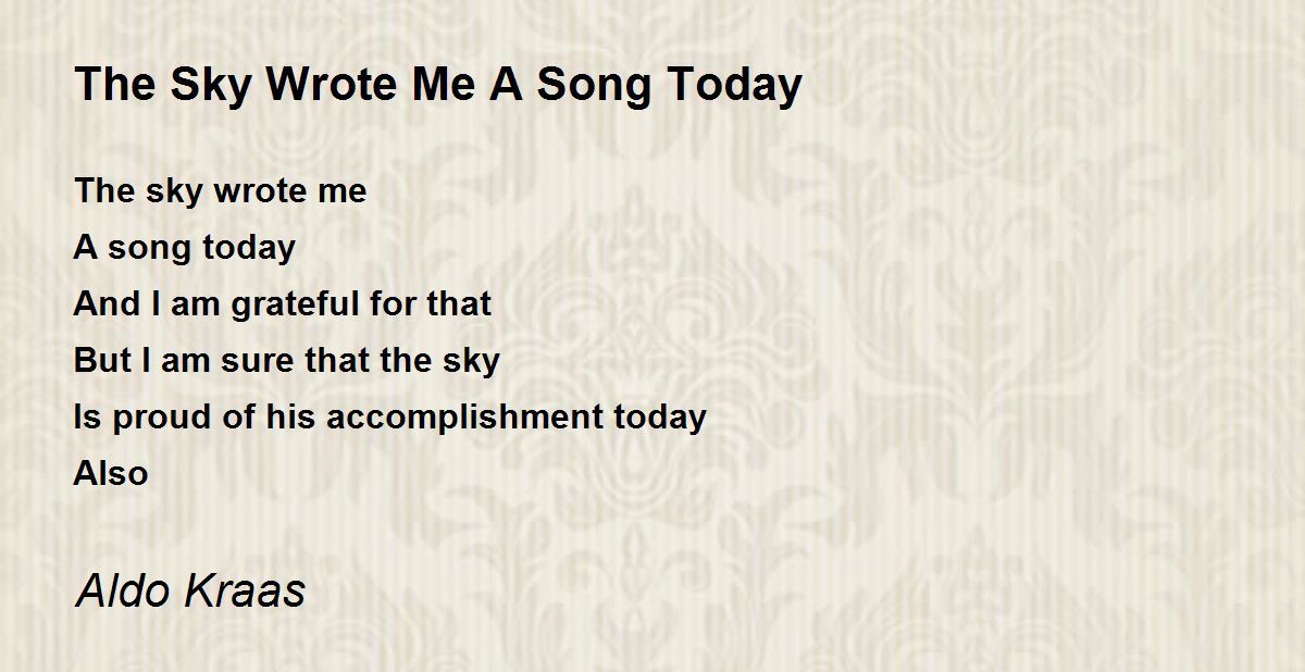 The sky wrote me A song today And I am grateful for that But I am sure that the sky Is proud of his accomplishment today Also