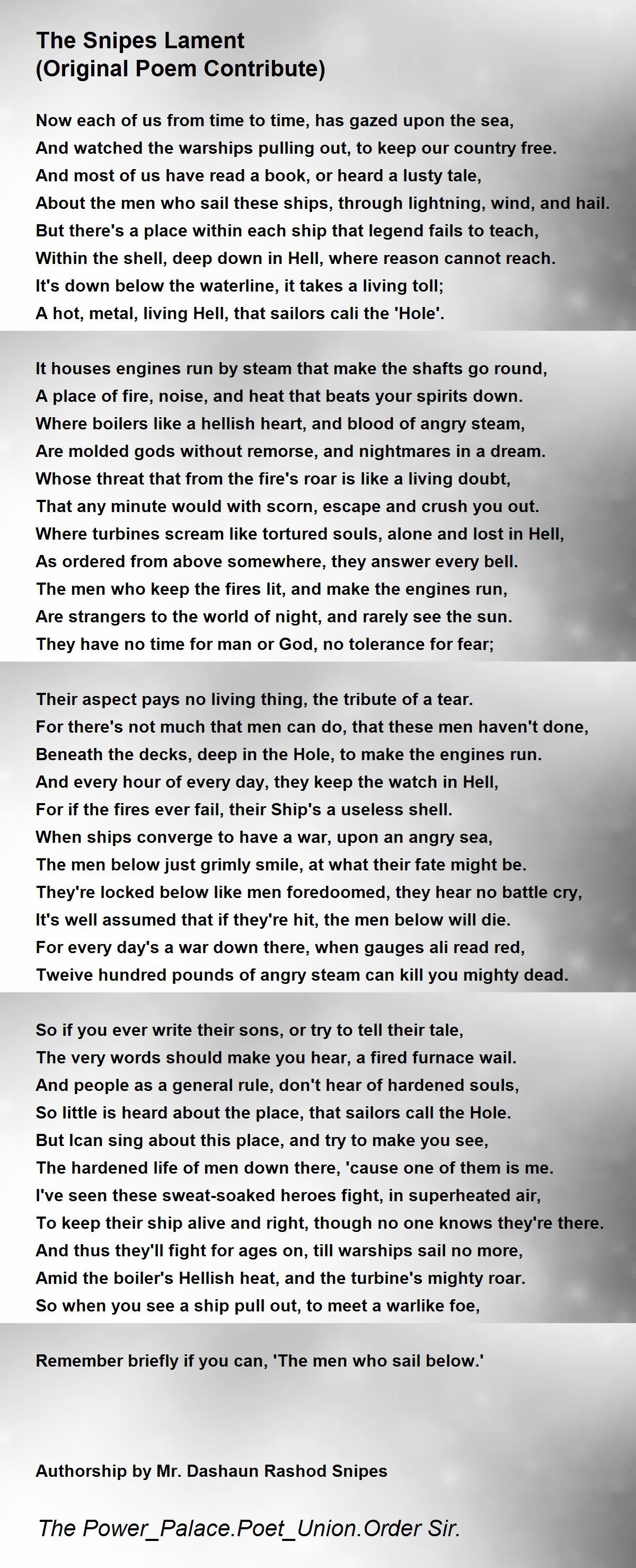 Amid the boiler's Hellish heat, and the turbine's mighty roar.