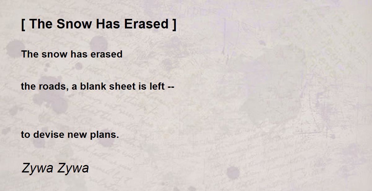 The snow has erased the roads, a blank sheet is left -- to devise new plans.