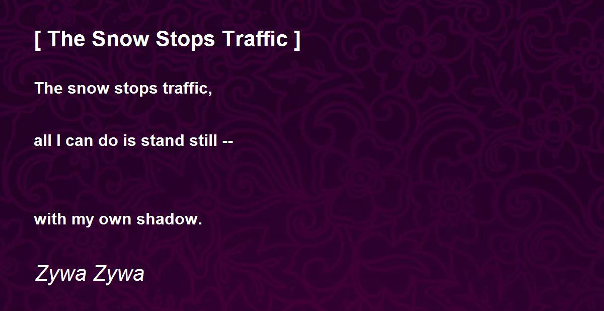 The snow stops traffic, all I can do is stand still -- with my own shadow.
