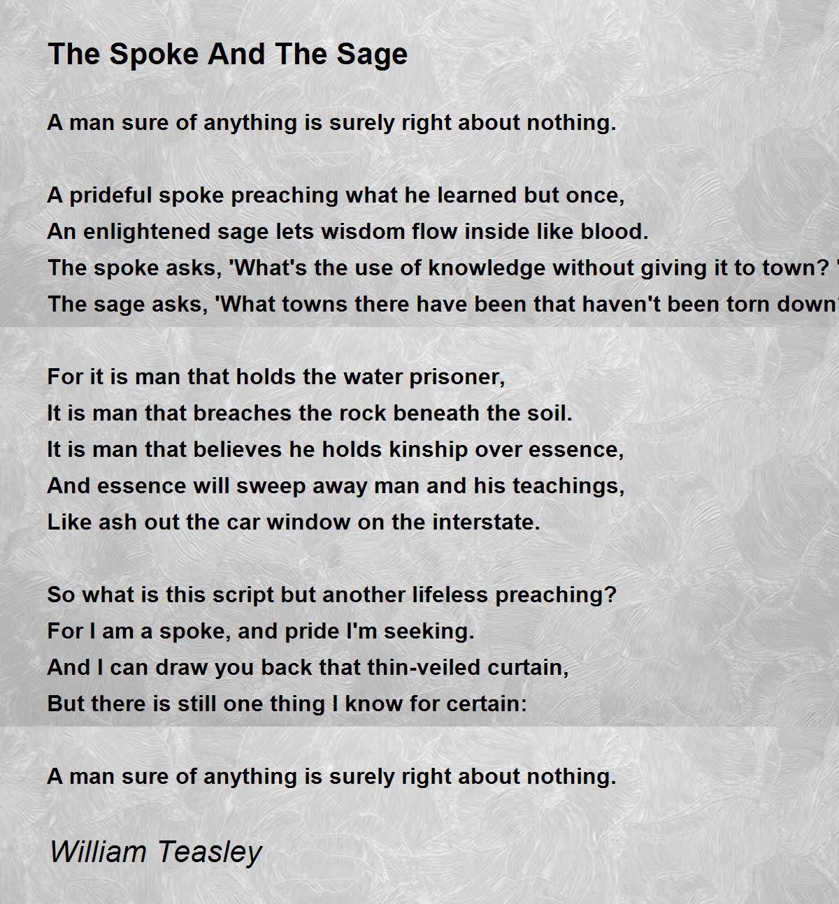 The spoke asks, 'What's the use of knowledge without giving it to town? '