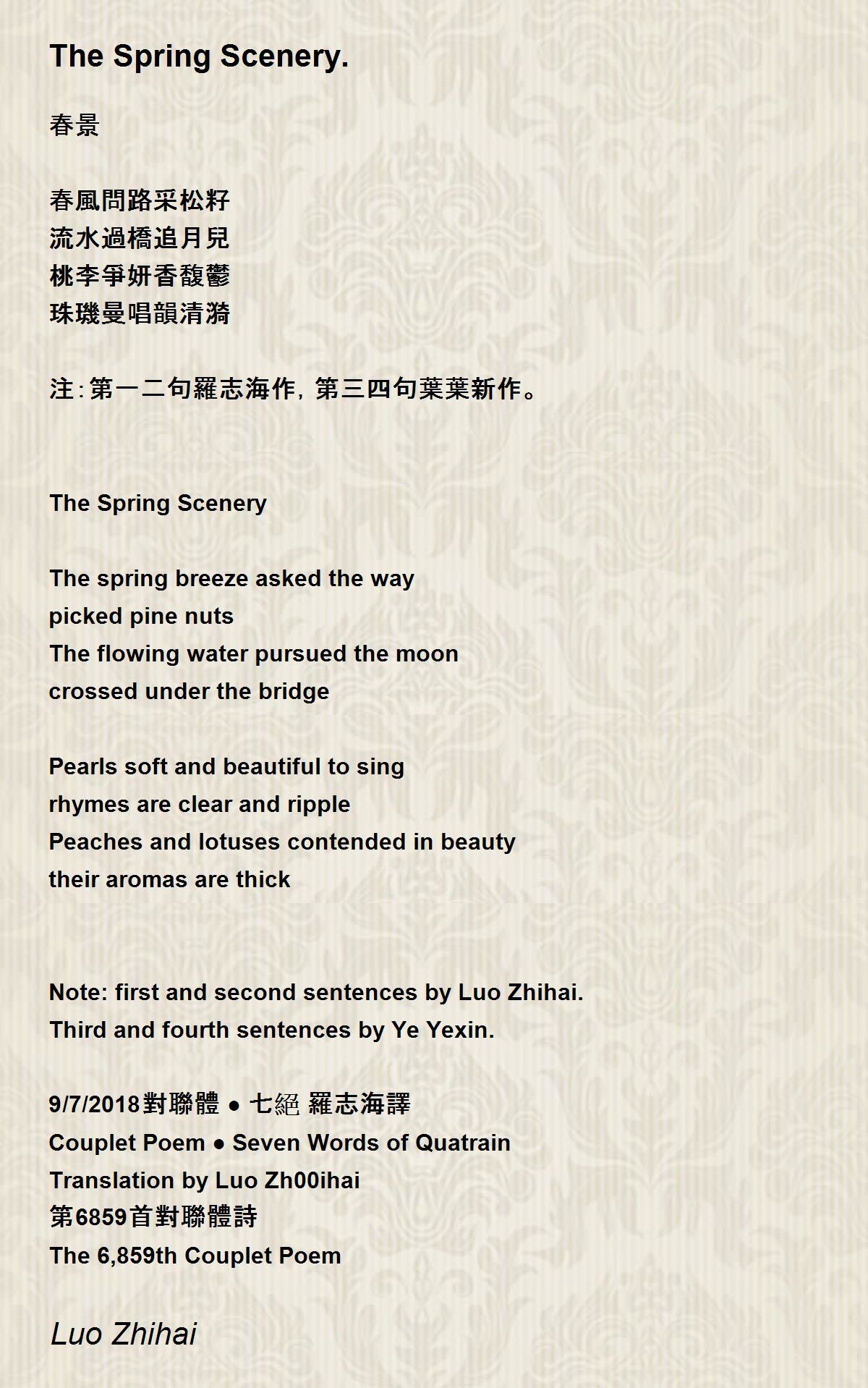 9/7/2018對聯體 ● 七絕 羅志海譯
