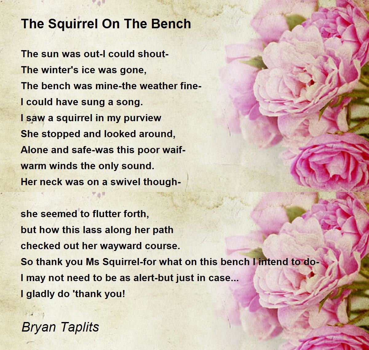 So thank you Ms Squirrel-for what on this bench I intend to do-