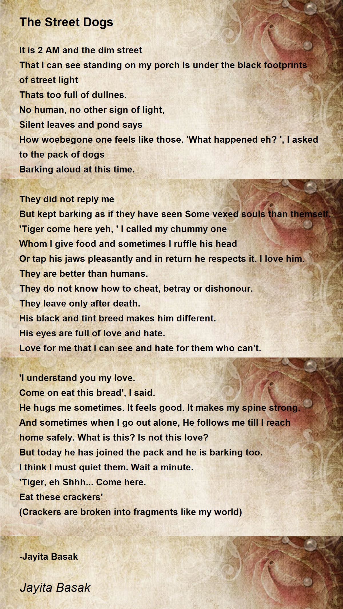 How woebegone one feels like those. 'What happened eh? ', I asked to the pack of dogs