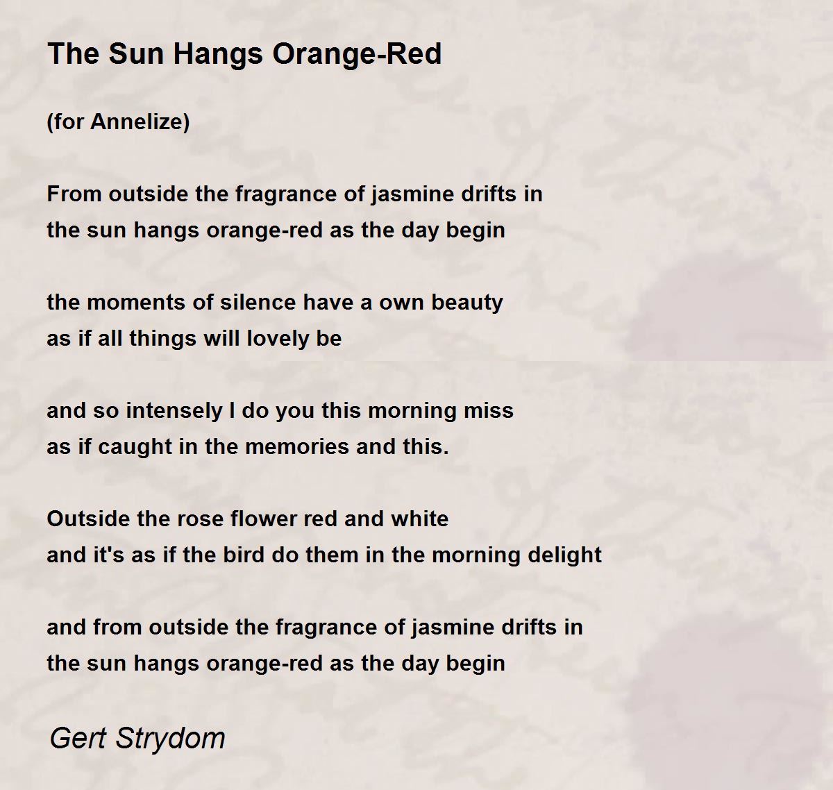 the sun hangs orange-red as the day begin