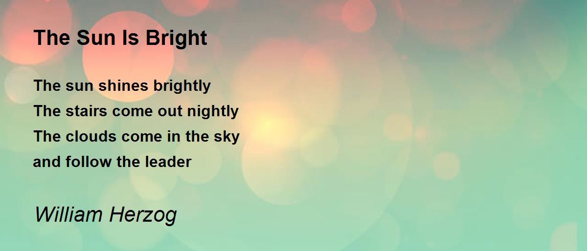 The sun shines brightly The stairs come out nightly The clouds come in the sky and follow the leader