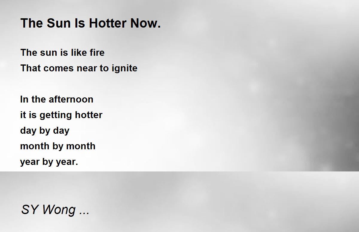 The sun is like fire That comes near to ignite In the afternoon it is getting hotter day by day month by month year by year.
