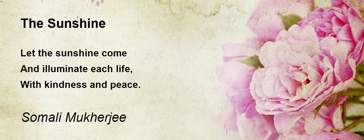 Topic(s) of this poem: sunshine,inspiration,inspirational,inspire,inspired,motivation,motivational,haiku,senryu,inner peace,peace,world peace,light,kindness,kind,human life,life,lessons of life,hardship,hardships,philosophy,philosophical,lesson,moral teachings,morality,ethics,humanity,humanism