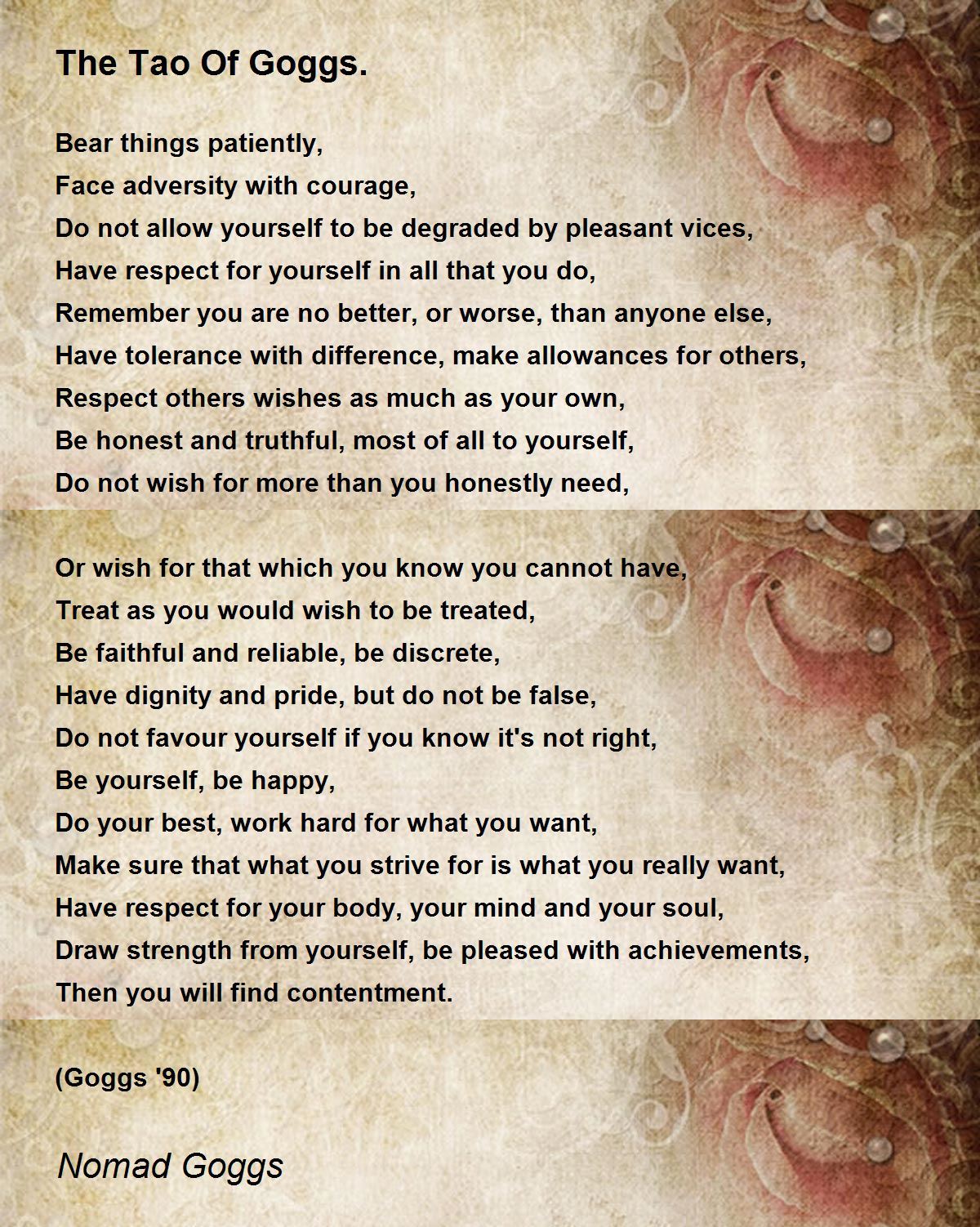 A most agreeable speech. Not too sure about the wish lines, if I had too much I'd share it and a certain degree of aspiration is a good thing. This reminds me of 'If' yet it stands up well on it's own. Esra Sloblock