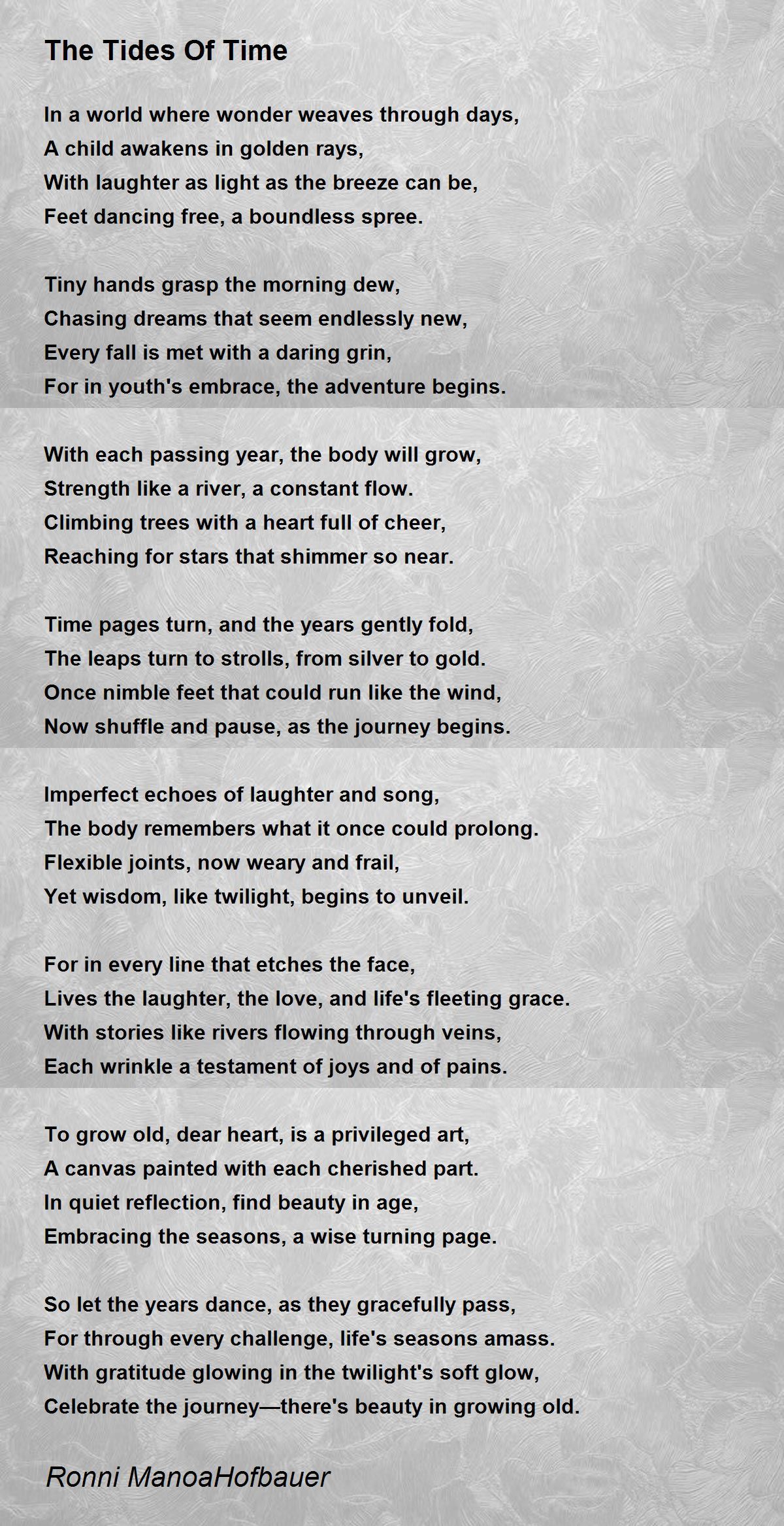 Time pages turn, and the years gently fold,