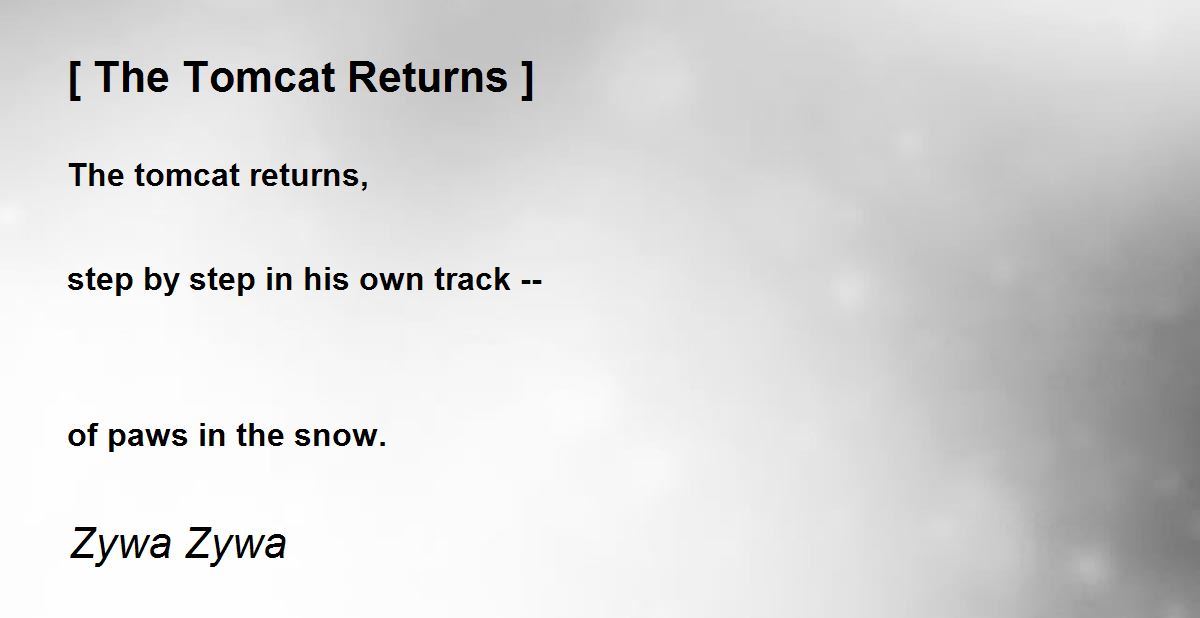 The tomcat returns, step by step in his own track -- of paws in the snow.