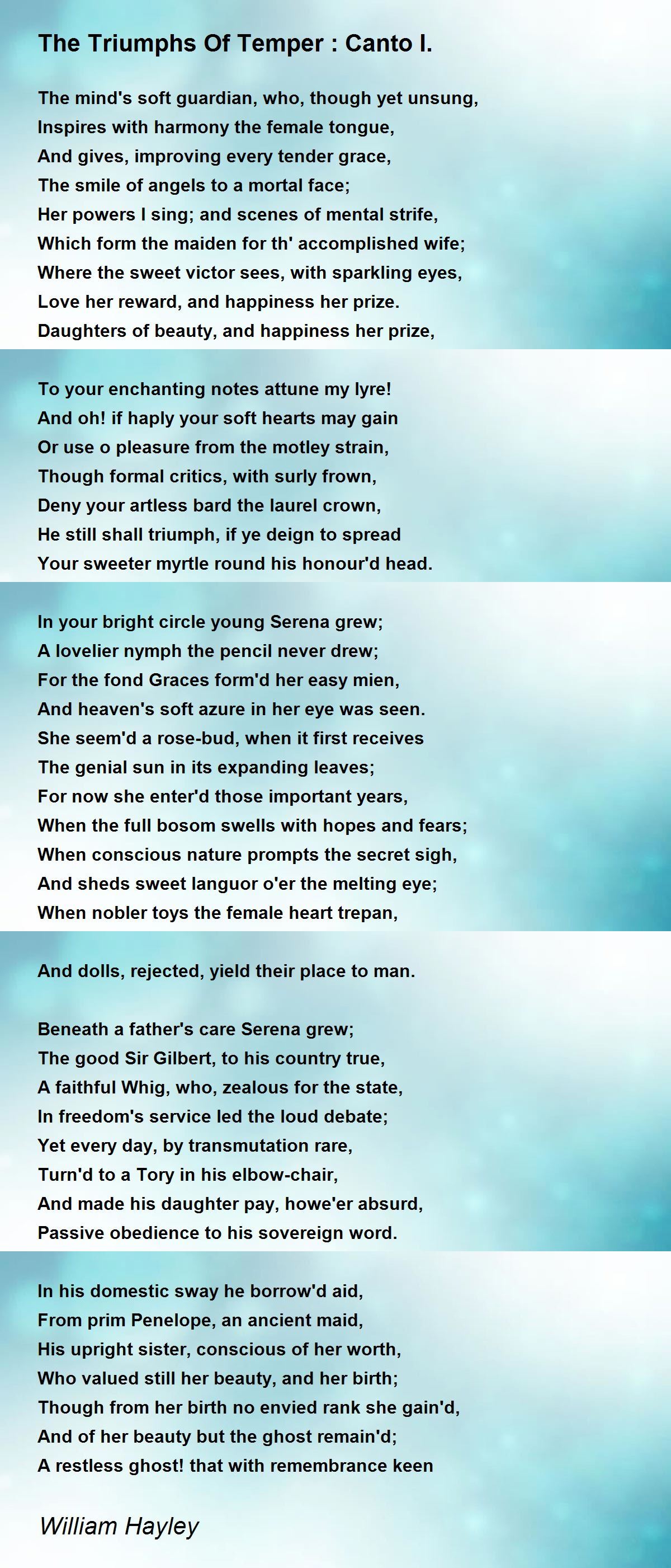 On all the virtues of her feeling breast.