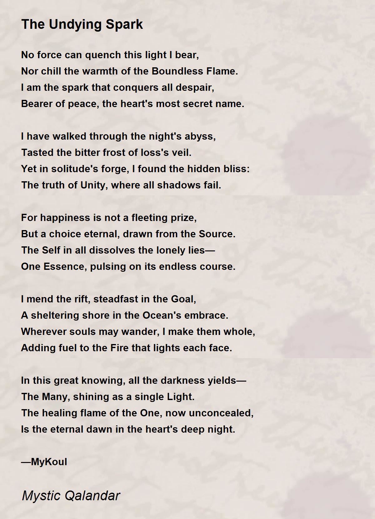 I am the spark that conquers all despair,