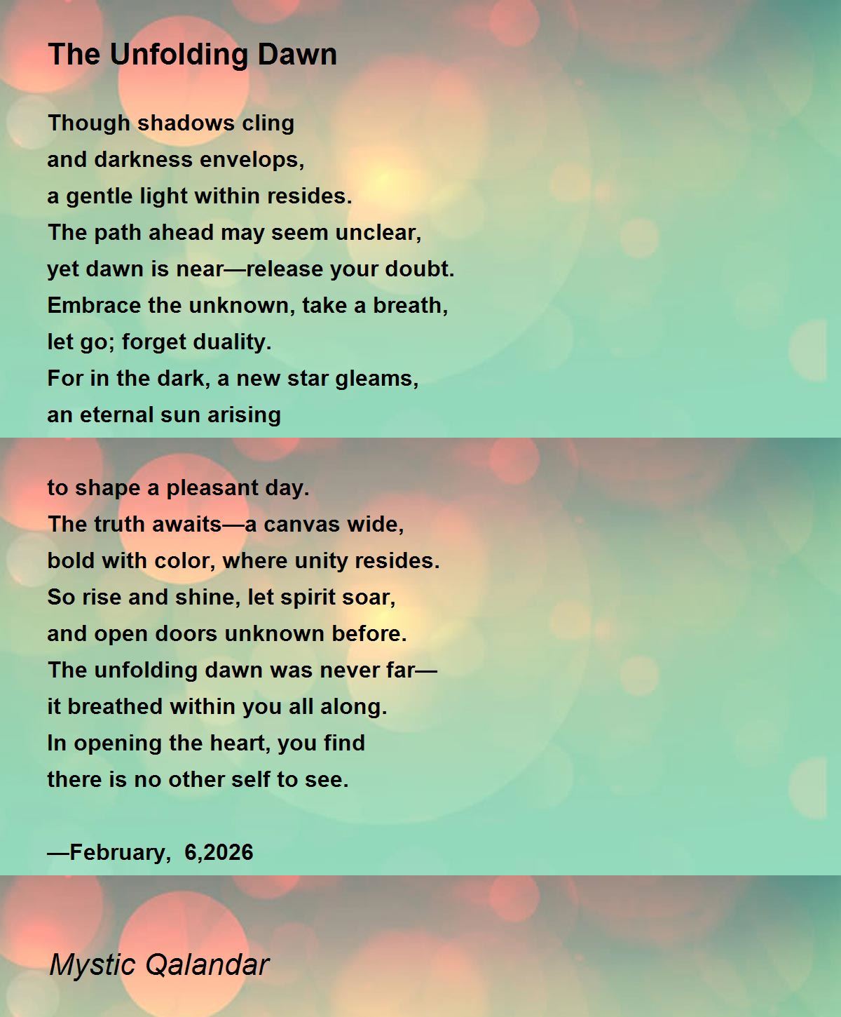 The Unfolding Dawn Poem by Mystic Qalandar