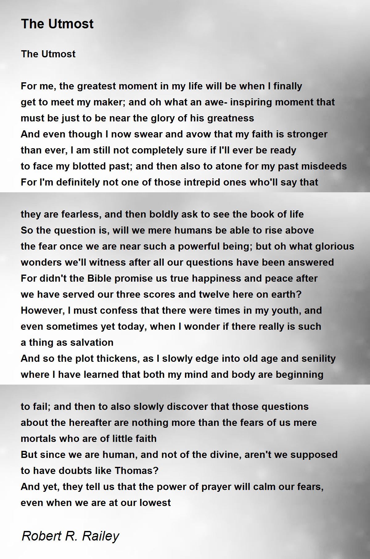 For me, the greatest moment in my life will be when I finally get to meet my maker; and oh what an awe-inspiring moment that must be just to be near the glory of his greatness