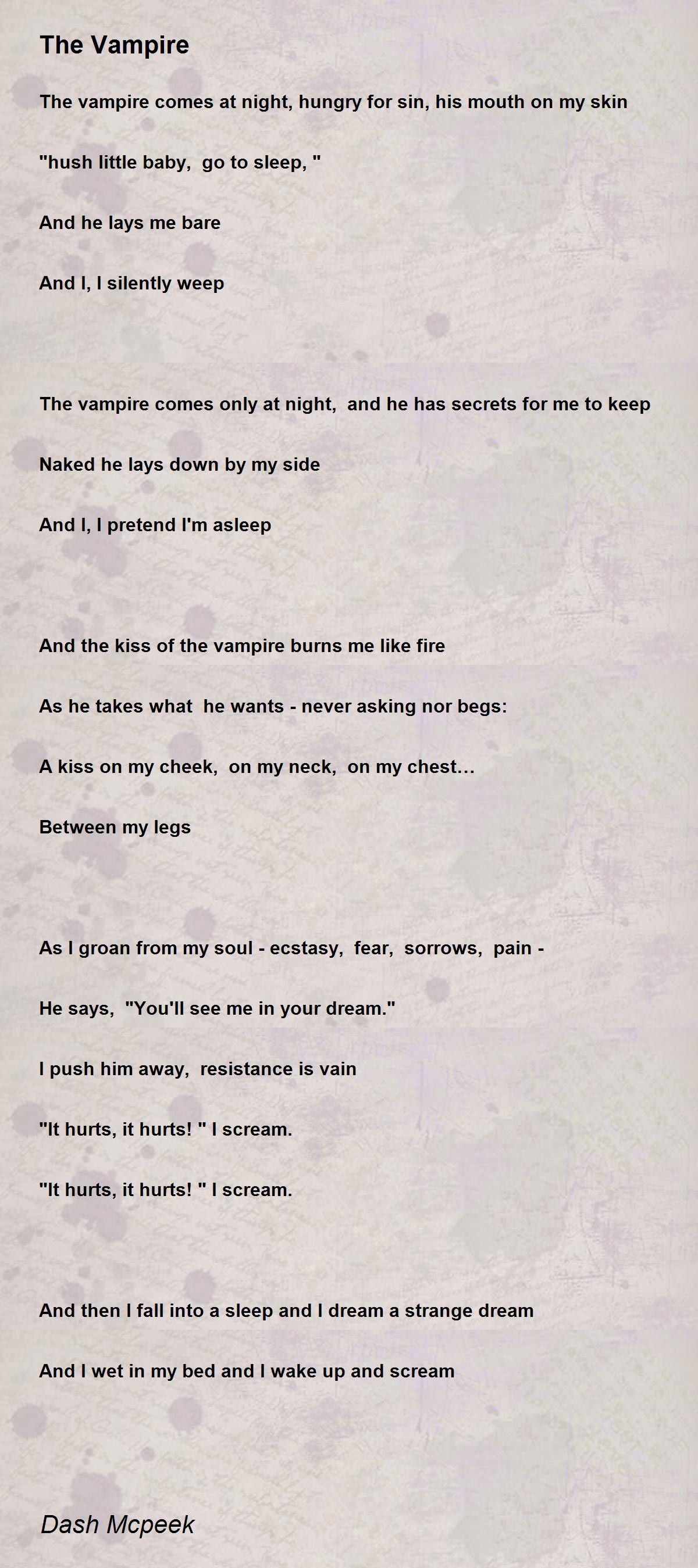 The vampire comes at night, hungry for sin, his mouth on my skin