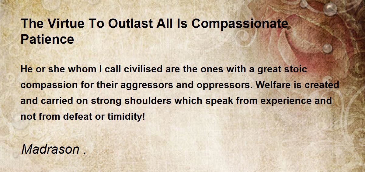 He or she whom I call civilised are the ones with a great stoic compassion for their aggressors and oppressors. Welfare is created and carried on strong shoulders which speak from experience and not from defeat or timidity!