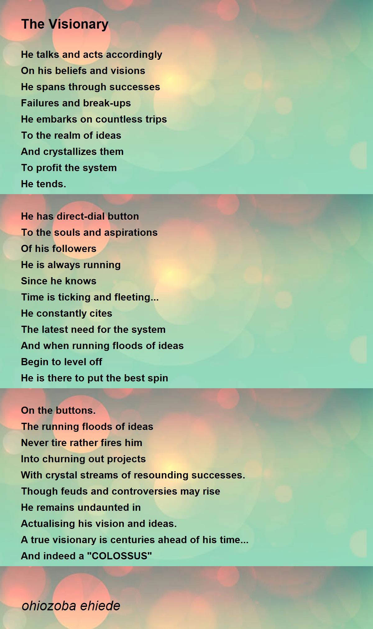 Actualising his vision and ideas.