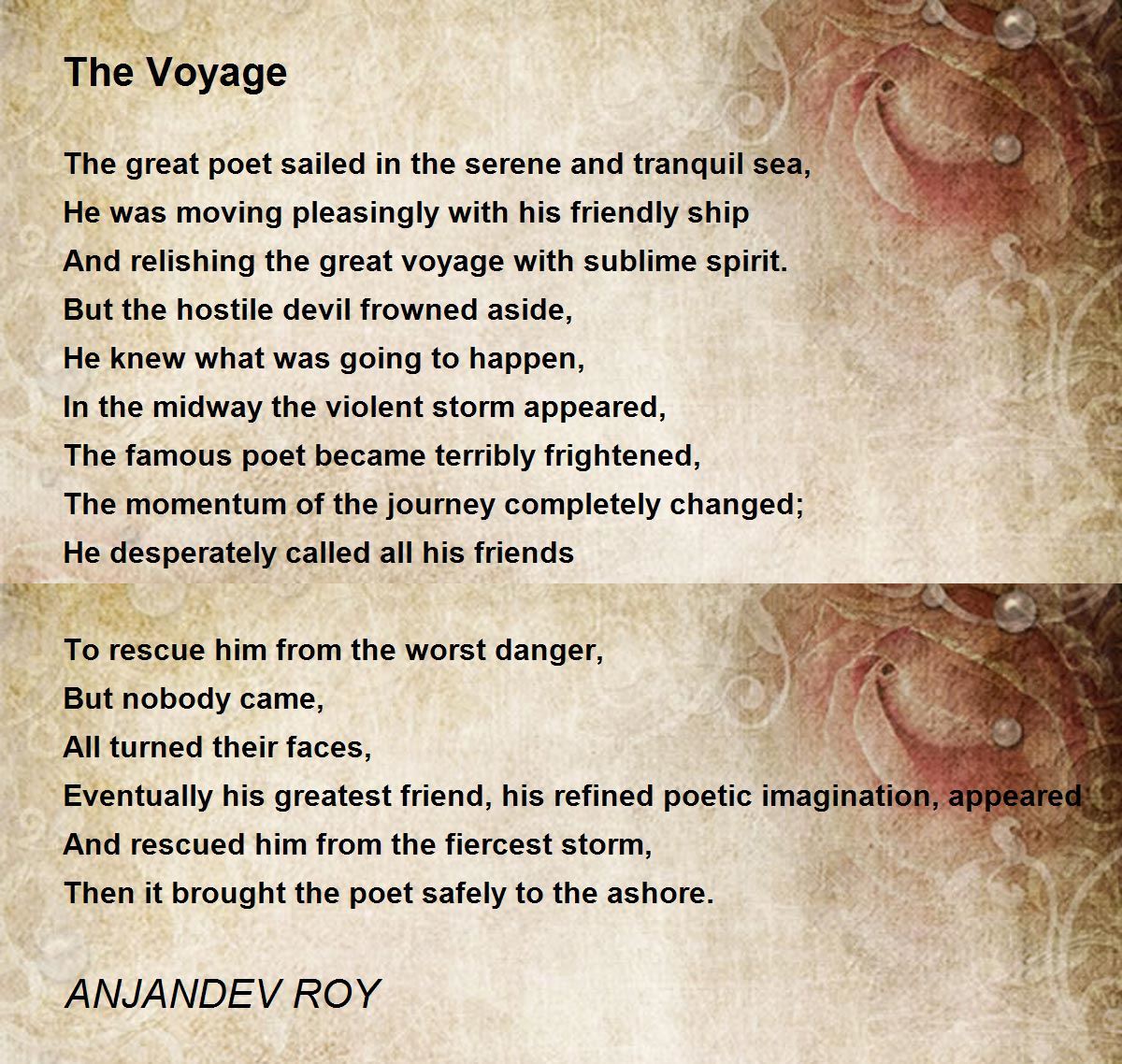 The voyage of the flight of imagery of a poet wonderfully depicted with accuracy in the conclusion. Thanks for sharing.10 points.